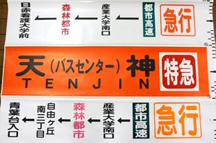 2013年秋現在、方向幕車も現役の同地区ですが、 西鉄バスイベントでは、余剰の方向幕の販売も始まっています。 |