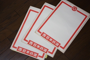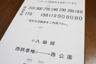 (右)「西鉄バスからのお知らせ」を記載する案内紙。 豪華なメモ帳としても使えそうです。 |
