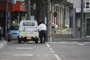 (左)朝、荷台に巻き取り機を積んだ軽トラがバスセンターに到着!
