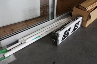 (左)本来の蛍光灯を点灯させる技術力の不足と、九州でも省エネの必要性があるとのことで、 最近流行の蛍光灯タイプのLED電球を新たに取り付けています。