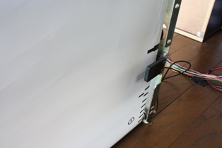 (左)巻き取りには手動のスイッチが付いています。操作盤がなくとも、このスイッチで幕の電動化はOK! ・・と言いたいところですが、一度操作盤で幕を動かしてみると、やみつきになって、これでは物足りないように思ってしまうようになりました(笑)