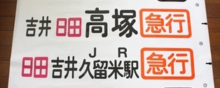 吉井営業所の方向幕に登載されている、久留米〜日田〜高塚(大分県)の急行便の方向幕です。