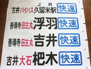 (左)路線車の横幕。 (右)高速車の横幕です。吉井営業所には優等系統用に高速バスがまとまった数配備されていました。 |