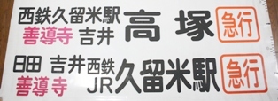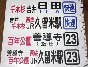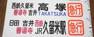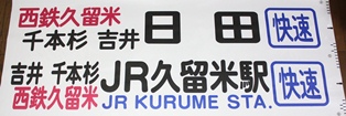 (左)高速車の前幕サイズです。 日田行にのみローマ字表記がなされています。 |