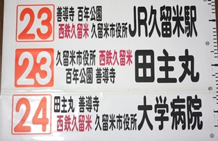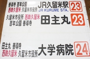 (右)大学病院行きは24番に番号を変更。JR久留米駅を経由せずに、市役所からそのまま病院へと乗り入れるようになりました。 |