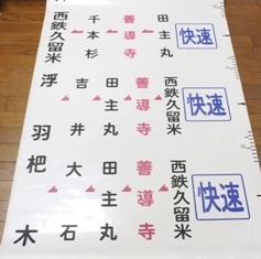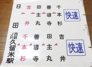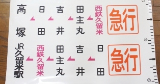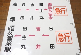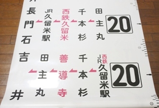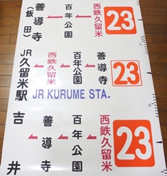 2000年代に入り久留米地区が色分けされた際、吉井方面はオレンジ色の幕となりました。