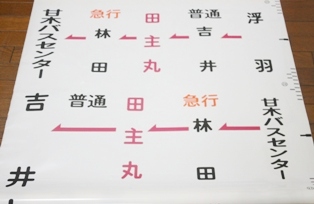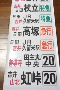 (右)光穴検知式の横幕。吉井から先、浮羽まで運行されていた時代のようです。 |