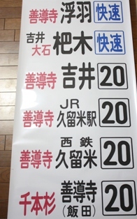 ・・モノクロ幕のやや古めのものです。日中便の一部が田主丸まで行かずに、途中の善院で折り返しとなります。 |