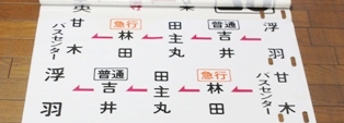 (右)大学病院行きが、なぜか青文字になっているタイプの物です。 |